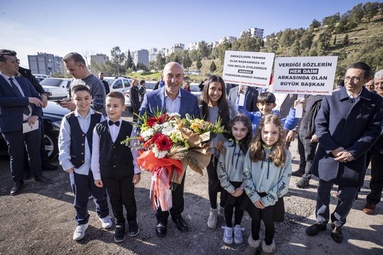 İzmir Büyükşehir Belediyesi’nin belediye personeli ve dar gelirli aileler için uygulamaya koyduğu 546 dairelik toplu konut projesinin temeli atıldı. Temel atma töreninde konuşan Başkan Tunç Soyer, “Ekonomik krizin her geçen gün derinleştiği, yoksulluğun ve yoksunluğun arttığı bir dönemde bu değerli projeyi başlatmak hem İzmir hem emekçilerimiz için çok önemli bir adım. Emekçilerimizin hayallerini gerçeğe dönüştürüyoruz” dedi.