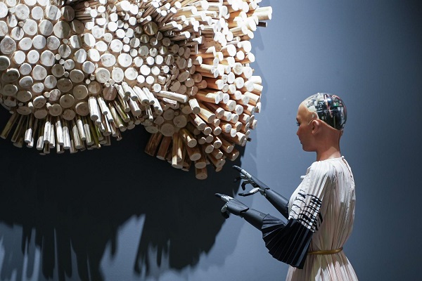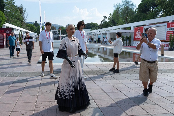 30 Ağustos- 9 Eylül tarihlerinde ‘Teknoloji’ temasıyla düzenlenen 93. İzmir Enternasyonal Fuarı’na insansı robot Sophia damga vurdu. Dijital deneyim ve sergi alanında sanat eserlerini inceleyen Sophia’nın bir sokak kedisi ile..