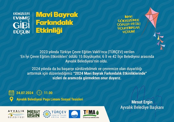 A yvalık’ın 2024 yılında da bu başarıyı sürdürebilmek ve çevremize olan duyarlılığı arttırmak için düzenlenen “Mavi Bayrak Farkındalık Etkinliklerine” katılarak herkesi destek olmaya bekliyoruz ” diye konuştu.