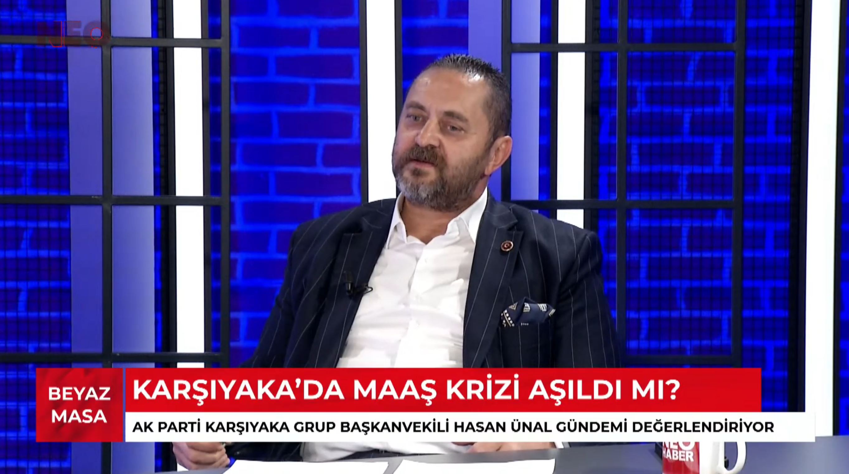 Neo Haber ekranlarında yayınlanan Beyaz Masa programına konuk olan AK Parti Karşıyaka Belediye Meclis Üyesi Hasan Ünal, Karşıyaka’daki mali kriz, çöp sorunu ve personel mağduriyetine dair çarpıcı açıklamalarda bulundu. Ünal, “Karşıyaka’da belediyecilik çökmüştür. 2019’dan bu yana yapılan her yanlış, halkın sırtına yıkılmıştır” dedi.