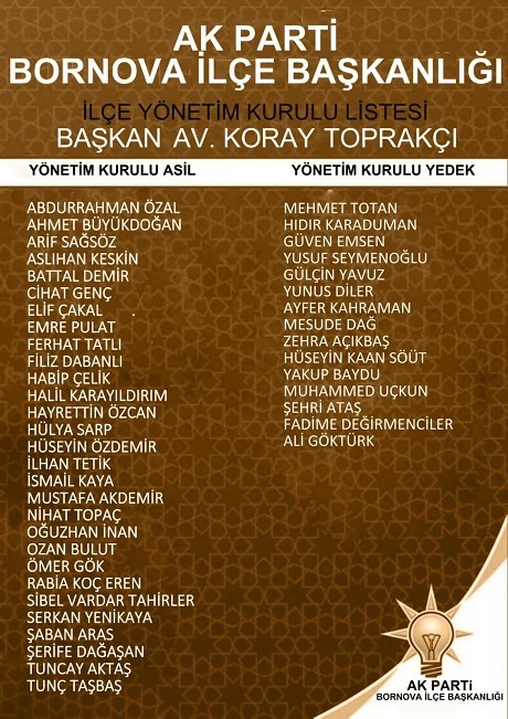 AK Parti Bornova İlçe Başkanı Koray Toprakçı A takımını belirledi.