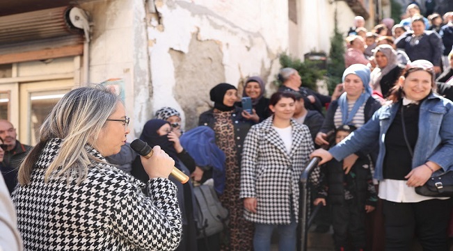AK Parti Konak Belediye Başkan Adayı Ceyda Bölünmez Çankırı, kentsel dönüşüm planında olmasına rağmen yıllardır çivi çakılmayan Ballıkuyu’da kadınlarla buluştu. Merdivenli ve yokuşlu sokaklarına acil durum araçlarının giremediğini, cenaze ve hastalarını battaniye ile taşıdıklarını söyleyen kadınlar kendilerine ikinci sınıf muamelesi yapıldığını öne sürdü. Çankırı da o sokaklardan birine girdi ve tek tek saydığı basamakları soluk soluğa çıkarak; “Bakanlık onaylı kentsel dönüşüm kararını hiçe sayıyorlar. Biz uzaya çıkarken 12 yıldır çivi çakılmayan bölgede hasta, hamile ve yaşlı insanlar merdivenlerle evlerine gitmeye çalışıyorlar.” dedi.