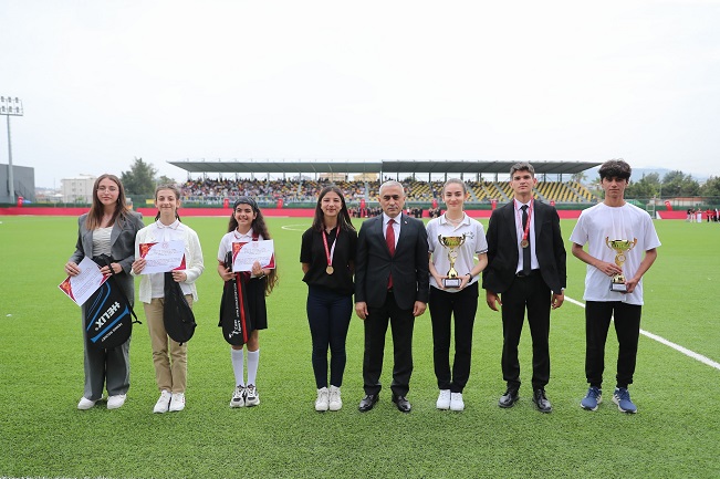Aliağa Cumhuriyet Meydanı’nda Aliağa Gençlik ve Spor İlçe Müdürü Özlem Günay Karataş’ın Atatürk Anıtına çelenk sunumuyla başlayan kutlama programı Aliağa Atatürk Stadyumu’nda gerçekleştirilen etkinliklerle devam etti.