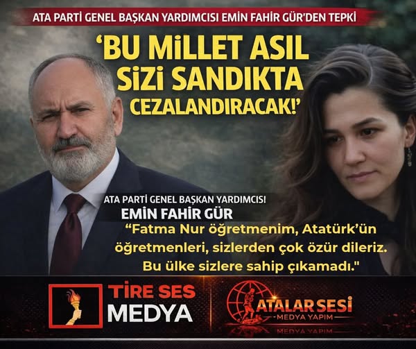 “BU MİLLET SİZİ SANDIKTA CEZALANDIRACAK”” ATA Parti Genel Başkan Yardımcısı Emin Fahir Gür, bıçaklı saldırı sonucu hayatını kaybeden öğretmen Fatma Nur Çelik için yayımladığı mesajda hem taziye hem de eğitim..