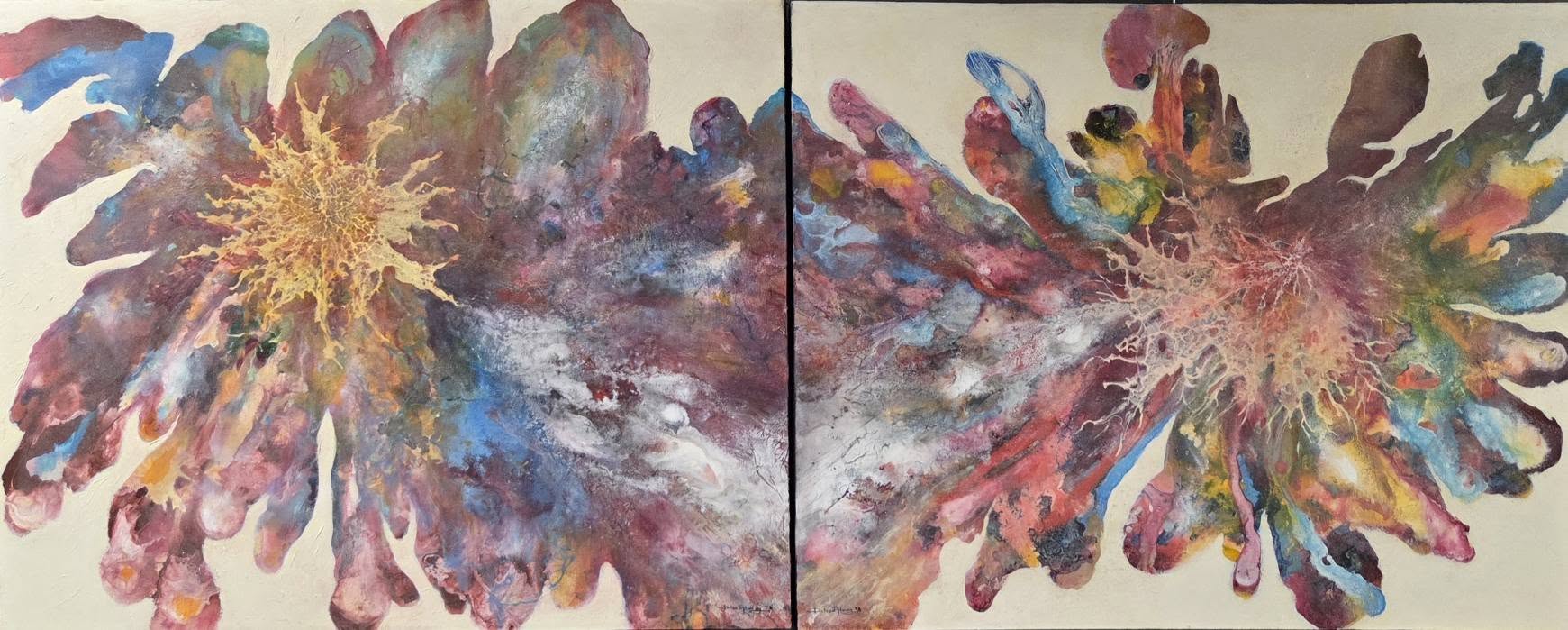 Bu düşünsel hattın ana durakları Oksimoron, Çatlayan Tohumlar ve Viral serileri… Atasoy, bu başlıklarla güncel hayatın gerilimlerine dokunuyor: çelişkinin sıradanlaşması, baskının çatlayıp dönüşüme evrilmesi, davranışların “viral” bir hızla yayılması… Böylece sergide biriken yalnızca boya katmanları değil; kişisel ve toplumsal deneyimlerin üst üste bindirdiği duygular, imgeler ve izler oluyor.