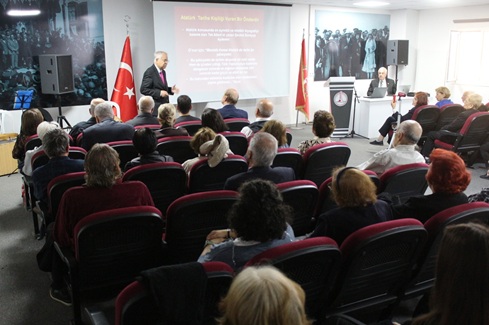 ROİSDER Başkanı Prof. Dr. Mustafa Kaymakçı, Karşıyaka Belediyesi Sancar Maruflu Yerleşkesi’nde, Karşıyaka Atatürkçü Düşünce Derneği, İSKEM, Türk Kadınlar Birliği İzmir Şubesi ve ROİSDER’in katkılarıyla düzenlenen etkinlikte “Atatürk, Doğa Sevgisi ve Tarım” konulu bir konferans verdi. Etkinlikte, Atatürk’ün doğaya ve üretime verdiği önem çeşitli yönleriyle ele alınırken, programın sonunda Atatürk’ün sevdiği türküler seslendirildi ve kendisiyle ilgili şiirlerden oluşan bir dinleti gerçekleştirildi. Etkinlik saygı duruşu ve İstiklal marşının söylenmesiyle başladı.