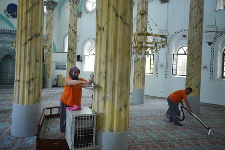 Ayvalık’ta yaşayan vatandaşların hijyenik ve sağlıklı bir ortamda ibadetlerini yerine getirebilmeleri için en ufak bir detayı bile gözden kaçırmayan ekipler; 16 Haziran Pazar günü başlayacak olan Kurban Bayramı öncesi, Sakarya, Çınarlı, Saatli, Hayrettin Paşa, Çamlık, Altınova Hacı Bayram, Şehitler, Cunda (Alibey) Adası Hamideyi olmak üzere tüm camilerde detaylı temizlik çalışması yapıldı.