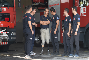 Engelli itfaiyeci çok sevdiği mesleğinden hiç kopmadı