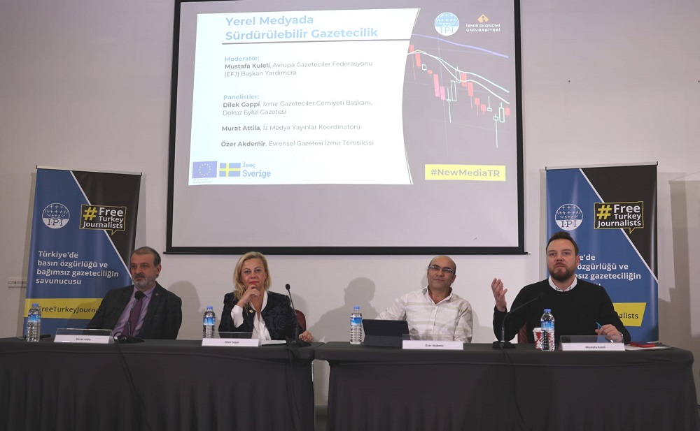 İzmir Ekonomi Üniversitesi’nin ev sahipliğinde Uluslararası Basın Enstitüsü tarafından düzenlenen ‘Medyanın Ekonomisi ve Finansal Sürdürülebilirliği’ sempozyumunda medyanın geleceği ve finansal yapısı ele alındı. ‘Yerel Medyada Sürdürülebilir Gazetecilik’ başlıklı panelde ise Avrupa Gazeteciler Federasyonu Başkan Yardımcısı ve Türkiye Gazeteciler Sendikası Yöneticisi Mustafa Kuleli, İzmir Gazeteciler Cemiyeti Başkanı Dilek Gappi, İZ Medya Yayınlar Koordinatörü Murat Atilla ile Evrensel Gazetesi Yazarı Özer Akdemir görüşlerini aktardı.