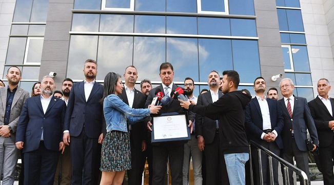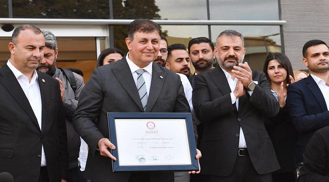 Başkan Cemil Tugay mazbatasını aldı
