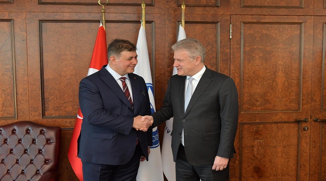 CHP İzmir Büyükşehir Belediye Başkan Adayı Dr. Cemil Tugay’ı İZTO ziyaretinde İZTO Yönetim Kurulu Başkanı Başkanı Mahmut Özgener, Meclis Başkanı Selami Özpoyraz, Yönetim Kurulu, Disiplin Kurulu üyeleri karşıladı. Özgener, ziyaretten duydukları memnuniyeti dile getirdi. CHP İzmir İl Başkanı Şenol Aslanoğlu’nun da eşlik ettiği toplantıda İzmir’in sanayi ve ticaret alanlarının yanı sıra kentin ekonomik ve sosyal alanda kalkınması için yerel yönetimler ile iş birliği konuları ele alındı.