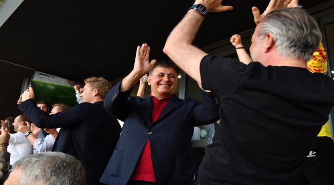 İzmir Büyükşehir Belediye Başkanı Dr. Cemil Tugay, Türkiye Futbol Federasyonu 1. Lig’de Gençlerbirliği’ni 2-0 mağlup ederek Süper Lig’e yükselen Göztepe’nin şampiyonluk coşkusuna eşlik etti. Gürsel Aksel Stadyumu’nda maçı izleyen Başkan..