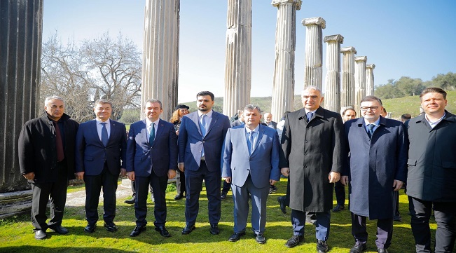 Cumhur İttifakı Bergama Belediye Başkan Adayı Dr. Sadık Doğruer ile birlikte, yeni dönemde Bergama’nın kültür ve turizm markasını güçlendirecek yatırım alanlarında incelemelerde bulunan Bakan Ersoy’a; İzmir Valisi Süleyman Elban, AK Parti Gençlik Kolları Genel Başkanı Milletvekilimiz Eyyüp Kadir İnan, AK Parti İl Başkanı Bilal Saygılı, Bergama Kaymakamı Avni Oral, Bergama Belediye Başkanı Hakan Koştu ve Cumhur İttifakı Bergama İlçe Başkanları Sebahattin Güzel ve Hasan Hüseyin Engin eşlik etti.