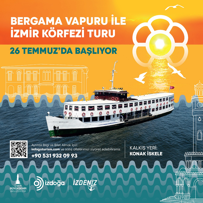 İzmir Büyükşehir Belediyesi şirketlerinden İzDoğa ve İzdeniz, İzmir’in doğal ve tarihi güzelliklerini gün yüzüne çıkarmaya devam ediyor. İzmir’in simgelerinden Bergama Vapuru ile düzenlenecek İzmir Körfezi turu, körfezdeki birçok noktayı gezme ve tanıma imkânı sunuyor. İlk tur, 26 Temmuz’da yapılacak.