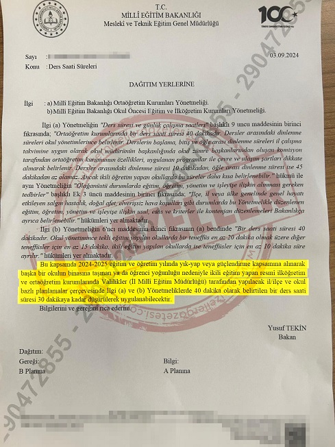 İzmir’in Buca ilçesinde, 2024-2025 eğitim öğretim yılına büyük bir kaosla başlandı. Milli Eğitim Bakanlığı tarafından 3 Eylül 2024 tarihinde il milli eğitim müdürlüklerine gönderilen genelge doğrultusunda, ders saatleri uygulamalarında önemli değişiklikler öngörülüyordu. Genelgede, ikili eğitim yapılan okullar ile depreme dayanaksız okulların öğrencilerinin başka okullara yerleştirilmesi durumunda, il müdürlüğü ve valilik onayı ile ders saatlerinin 30 dakikaya indirilebileceği belirtilmişti.