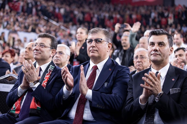 CHP’nin Cumhurbaşkanlığı Ön Seçimi adayı, İstanbul Büyükşehir Belediye (İBB) Başkanı Ekrem İmamoğlu’nun İzmir’de Mustafa Kemal Atatürk Spor Salonu’ndaki programında konuşan İzmir Büyükşehir Belediye Bakanı Dr. Cemil Tugay, İmamoğlu’nun bu önemli yolculuğu İzmir’den başlattığını hatırlatarak, “Bu gurur tablosunu İzmir’e yaşattığınız için hepinize teşekkür ediyorum. Bugün cesur bir yüreği, bir cesur insanı, bir büyük lideri hazırlandığı yolculukta selamlamak için buradayız. Hoş geldiniz Ekrem Başkanım, sefalar getirdiniz İzmir’imize.  ‘Biz Mustafa Kemal’in askerleriyiz’ diyoruz. Neyin mirasını devraldığımızı bildiğimiz için bunu söylüyoruz. Kurtuluş yok tek başına, ya hep beraber ya hiçbirimiz diyoruz. Bu birlik ve beraberliğin farkında olduğumuz için bunu söylüyoruz. Değerli yoldaşlarım, CHP’nin bir neferi olmak onurdur. Bu partinin çatısı altında siyaset yapmak büyük bir onurdur. Bu onuru kimi zaman sıradan bir üye olarak, kimi zaman örgütte farklı görevler üstlenerek yaşıyoruz. Bugün belediye başkanları olarak ya da örgütte görev alan pek çok arkadaşımızla beraber, aldığımız sorumluluğun farkındayız” dedi.