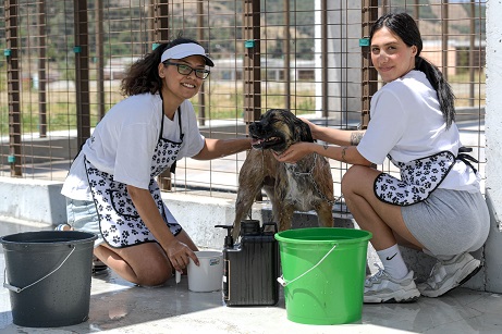 Yaz sıcaklarında İzmir Büyükşehir Belediyesi Pako Sokak Hayvanları Sosyal Yaşam Kampüsü’ndeki sahipsiz köpekler unutulmadı. İzmir’deki pet kuaförleri gönüllü olarak kampüse geldi, köpekleri önce tıraş etti sonra yıkadı. İzmir Büyükşehir Belediyesi..