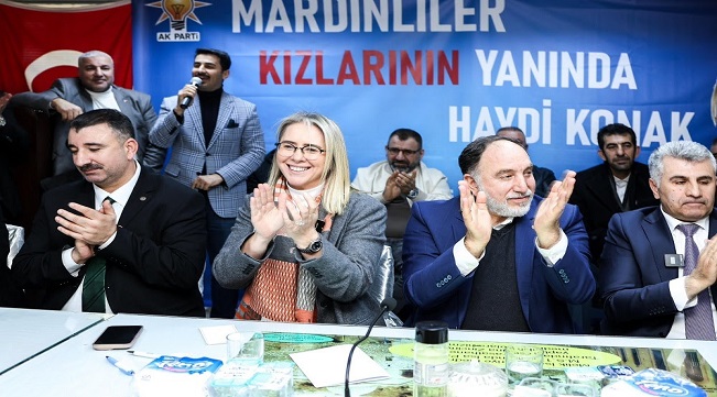 AK Parti Konak Belediye Başkan adayı Ceyda Bölünmez Çankırı ve AK Parti Karabağlar Belediye Başkan Adayı Mehmet Sadık Tunç, İzmir Mardinliler Eğitim Kültür Dayanışma ve Kalkınma Vakfı (MARVAK)’da bir araya geldi. Toplantıda ‘Mardinliler kızlarının yanında haydi Konak’ yazılı dev afiş dikkat çekti.