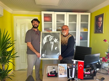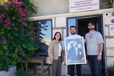 Çeşme Belediye Başkanı Lâl Denizli’nin talimatıyla gerçekleştirilen bu anlamlı hediye takdimi kapsamında, belediye ekipleri muhtarlıkları tek tek ziyaret ederek Atatürk’ün Türk bayrağı önündeki portresini teslim etti.
