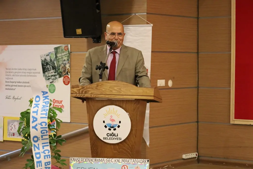 Etkinlikte kürsüye çıkan Çağdaş Çiğli Kanserle Mücadele Derneği Sosyal Yardımlaşma Derneği Onursal Başkanı ve Çiğli Esnaf ve Sanatkarlar Odası Başkanı Arif Altıkulaç, katılımcılara duygu dolu bir konuşma yaptı. Konuşmasında, kanserle olan kişisel mücadelesini ve bu mücadeleden doğan dernekleşme sürecini içtenlikle paylaşan Altıkulaç, doktora görünmeyi ihmal etmemeyi önerdi.