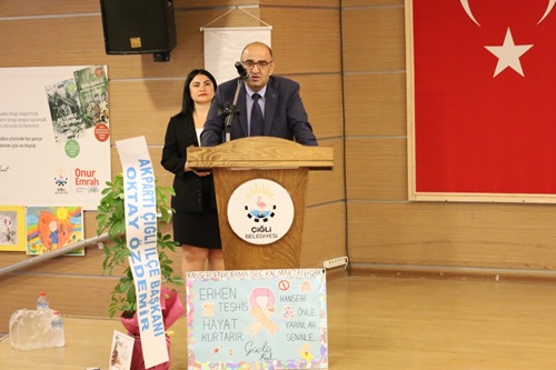Etkinlikte söz alan Çiğli İlçe Milli Eğitim Müdürü Şuayip Üner, eğitimin sadece bilgi öğretmekle sınırlı olmadığını, bireyde olumlu davranış değişikliği oluşturmanın da temel amaç olduğunu vurguladı. STK’ların bu süreçte önemli rol oynadığını ifade eden Üner, “Sivil toplum kuruluşları ve bürokrasi iş birliğiyle toplumda daha hızlı ve etkili çözümler üretilebilir. Bu bilinçle hareket eden Çağdaş Çiğli Kanserle Mücadele Derneği’ni kutluyorum,” şeklinde konuştu.
