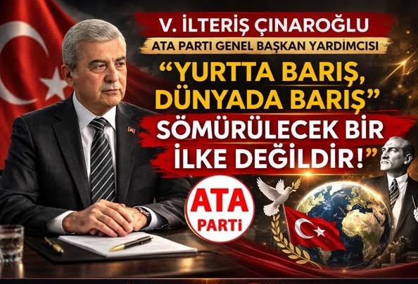 ATA PARTİ GENEL BAŞKAN YARDIMCISI V. İLTERİŞ ÇINAROĞLU; “YURTTA BARIŞ, DÜNYADA BARIŞ SÖMÜRÜLECEK BİR İLKE DEĞİLDİR” V. İlteriş Çınaroğlu, “Yurtta barış, dünyada barış” sözünün tarihsel ve siyasal bağlamından koparılarak kullanılmasına..