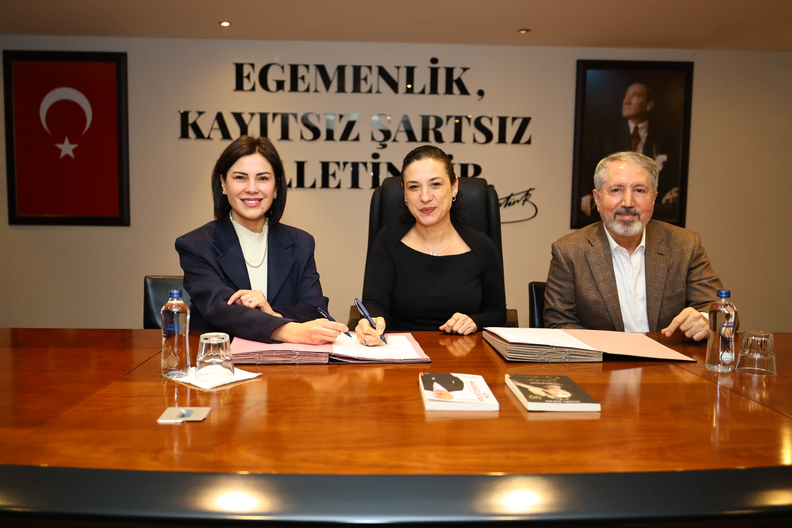 Efes Selçuk Belediyesi ile UCİM Saadet Öğretmen Çocuk İstismarı ile Mücadele Derneği arasındaki iş birliği protokolü, Efes Belediye Başkanı Filiz Ceritoğlu Sengel ve Dernek Başkanı Saadet Özkan tarafından imzalandı.