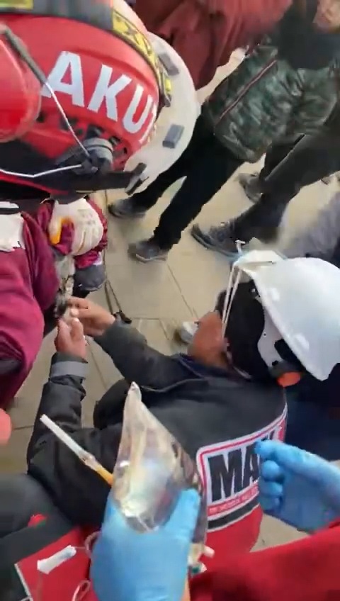Depremin ardından afet bölgesine giden Menemen Belediye Arama Kurtarma (MAKUR) ekibi personeli, 10 katlı bina enkazından kurtarılan bir kediye serum taktı. Canla başla çalışmalarını sürdüren MAKUR ekibi, “Enkaz altından çıkarılan..