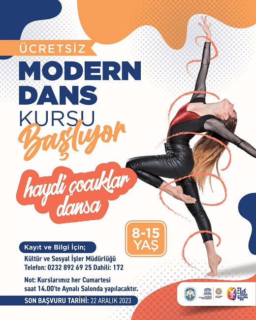 Çocuk Meclisi’nin isteğiyle açılacak modern dans kursu için başvurular Efes Selçuk Belediyesi Kültür ve Sosyal İşler Müdürlüğü’ne yapılacak. Başvuruların sona ermesinin ardından kurslar her Cumartesi saat 14.00’te Aynalı Salon’da düzenlenecek.