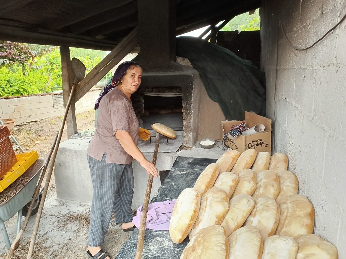 “İnsanlar buradan giderken çocuklarına da ekmek alıyorlar. Hediye olarak götürüyorlar. Büyük kentlerde bu ekmeği bulamadıklarını söylüyorlar. Yaptığım ekşi maya ekmek kolay bozulmuyor. Fazla ekmek alanlar buzdolabında sakladıklarını söylüyorlar ve lezzeti hiç değişmiyor. Benden ekmek alanların birçoğu ile arkadaş olduk bir ekmek alan başka bir arkadaşına beni öneriyor benden ekmek alan sayısı bu şekilde her geçen gün artıyor. Yaptığım ekmek tamamen doğal hiçbir katkı maddesi kullanmıyorum, eski usulle yapıyorum. Türkiye’nin her yerine gidiyor diyebilirim ekmeğim. Karanfilli ve normal ekmek yapıyorum, sakızlı ekmek isteyen müşterilerim sakızı kendisi getiriyor ben de ekmeği öyle yapıyorum. Her çeşit ekmek yapıyorum. Aslında çok fazla talep var ancak ben yalnız çalıştığım için yetişebildiğim kadar yapıyorum. Evimizin bahçesine eşim bir fırın yaptı burada zeytin ağacı odunundan ve zeytin çırpılarından eşim fırını yakıyor ekmekleri burada pişiriyorum. Köyümüz Burhaniye Edremit arasında havaalanına yakın. Uçakla giden müşterilerim önce köye geliyor ekmek alıyor sonra havaalanına gidiyor.”