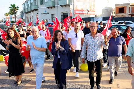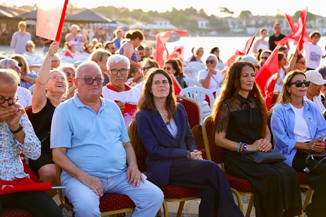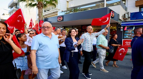 Ilıca Atatürk Heykeli’nin önünden başlayarak sahil boyunca bando ve denizden tekneler eşliğinde devam eden kortej Ilıca Taş İskele’de son buldu. Yurttaşlarla beraber kortej yürüyüşüne katılan Çeşme Belediye Başkanı Lal Denizli, saygı duruşu ve İstiklal Marşı’nın okunmasının ardından burada yaptığı konuşmasında şunları söyledi: