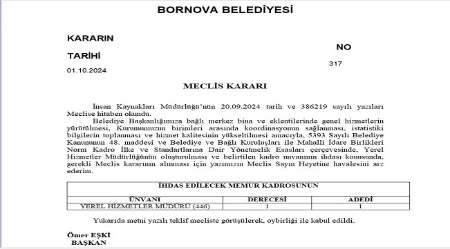 Üstelik Dayısı için yeni Müdürlük kurdu ve “yerel hizmetler müdürü” olarak işe aldı. Yani hayırlı yeğen Eşki dayısı için yeni bir müdürlük icat etti. Üstelik öyle güzel kamufle etti ki, kararı meclisten oy birliği ile geçirdi.