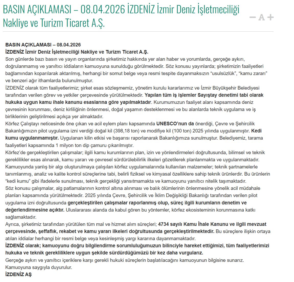 TEMİZELLER’in ortaya çıkardığı skandalın ardından köşeye sıkışan İZDENİZ A.Ş., her şeyin “yasal ve bilimsel” olduğunu iddia eden bir basın açıklaması yayımladı.