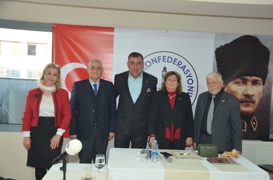 Konfederasyon ofisinde düzenlenen basın toplantısında önemli açıklamalarda bulunan İZKON Genel Başkanı Ferhan Ademhan, “Geçtiğimiz günlerde de PKK’ya çağrıda bulunmuştuk. Yine aynı çağrıyı tekrarlıyoruz. Amasız ve şartsız olarak silahların susmasını istiyoruz, Artık gençlerimiz ölmesin ve analarımız ağlamasın. Gerekirse terörün durması ve PKK’nın silah bırakması için Diyarbakır’a önümüzdeki Nisan ayında bir yürüyüş düzenlemek istiyoruz. Türkiye Cumhuriyeti yüzyıllık bir geçmişi geride bırakıp yeni yüzyılına hazırlanmaktadır. Böyle önemli bir süreçte artık terör örgütü PKK’nın da silah bırakmasını istiyoruz. Bu nedenle 100’üncü yılımızda yani 2023’te artık bu sorunun konuşulmasını istemiyoruz” dedi.