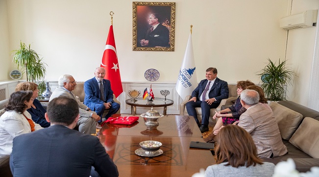 İzmir Büyükşehir Belediye Başkanı Dr. Cemil Tugay, İzmir’in kardeş kenti Bremen’in Osterholz bölgesinin belediye başkanı Ulrich Schlüter ile beraberindeki heyeti makamında ağırladı. Karşılıklı iş birliklerine hazır olduklarını, var olan ilişkileri geliştireceklerini kaydeden Başkan Tugay, yakın zamanda Bremen’e geleceğini ifade etti.