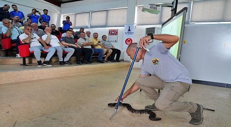 İzmir Büyükşehir Belediyesi İtfaiye Dairesi Başkanı İsmail Derse, son zamanlarda 112 çağrı merkezinden İzmir İtfaiyesine gelen yılan ihbarlarının arttığını belirterek, böyle bir duruma ekipleri hazırlamak için bu çalışmayı başlattıklarını söyledi. Derse, “İtfaiye ekiplerimizin bu tür olaylara sağlıklı şekilde müdahale edebilmesi için müdahale bilincinin gelişmesi gerekiyor. Bu nedenle böyle bir eğitime ihtiyaç duyduk” dedi. Derse, “Biz özellikle çalışma arkadaşlarımızın doğru bir teknikle, önce güvenli ekipmanlarla, kendini koruyarak yılanı yakalamasını istiyoruz. Yılanı da ürkütmeden kolayca yakalayabilmeleri için bu eğitim önemli. Bu işi şu anda yapan arkadaşlarımız var. Ancak çalışmanın daha profesyonel olarak yürütmesi gerekiyor. O nedenle de doğru teknik, doğru eğitim ve doğru bilginin daha sağlıklı olduğunu düşünüyoruz” diye konuştu.