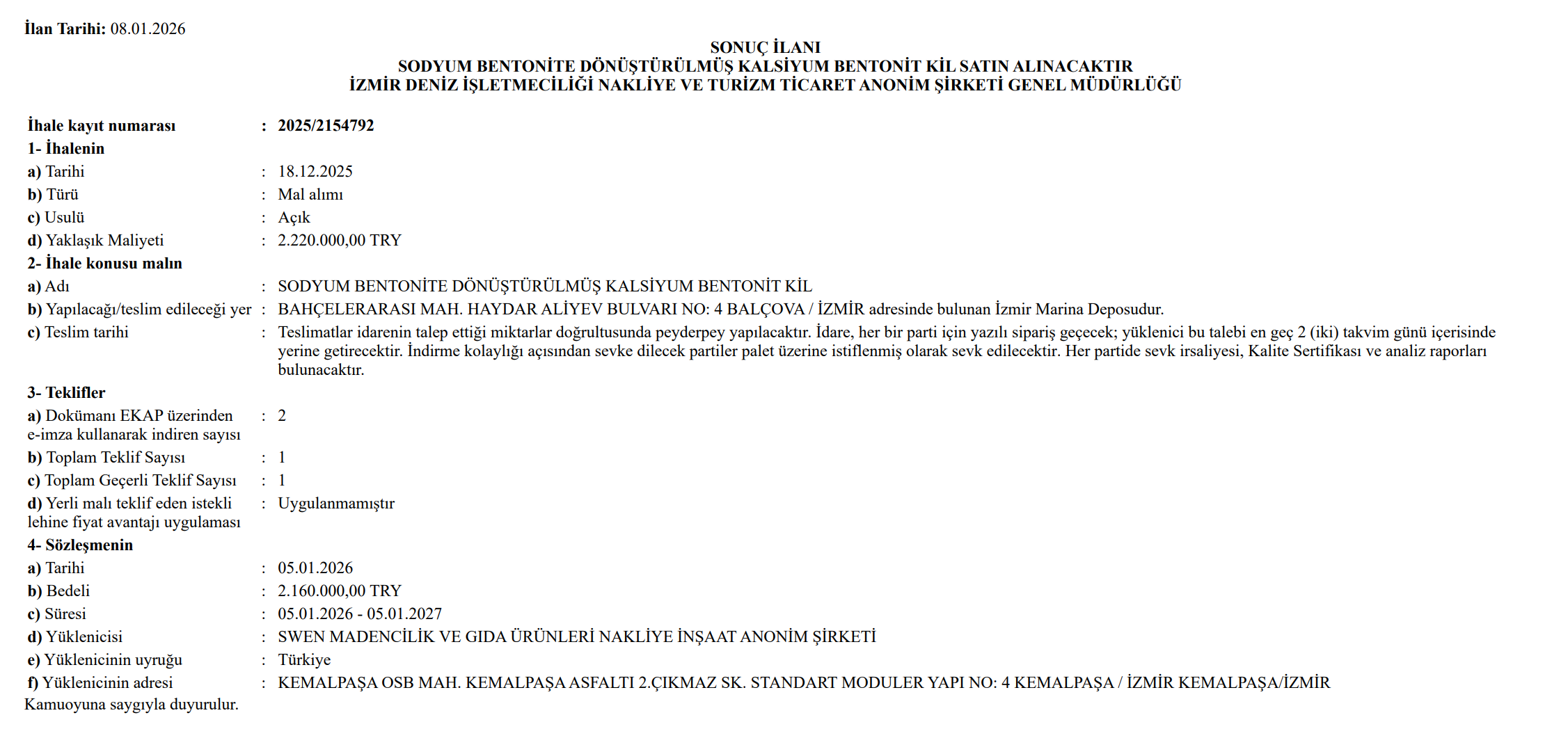 İzmir Büyükşehir Belediyesi ve İZDENİZ yönetimi tarafından aylardır “Dünya çapında teknoloji”, “Çin modeli modifiye kil” sloganlarıyla pazarlanan uygulamanın aslı, TEMİZELLER’in ulaştığı ihale belgeleriyle deşifre oldu. Bilimsel literatürde kimyasal işlem görmüş, ileri teknoloji ürünü olan “Modifiye Kil” yerine; İZDENİZ ’in piyasadan bildiğimiz doğal “Sodyum Bentonit” yani KEDİ KUMU ham maddesi aldığı ortaya çıktı.