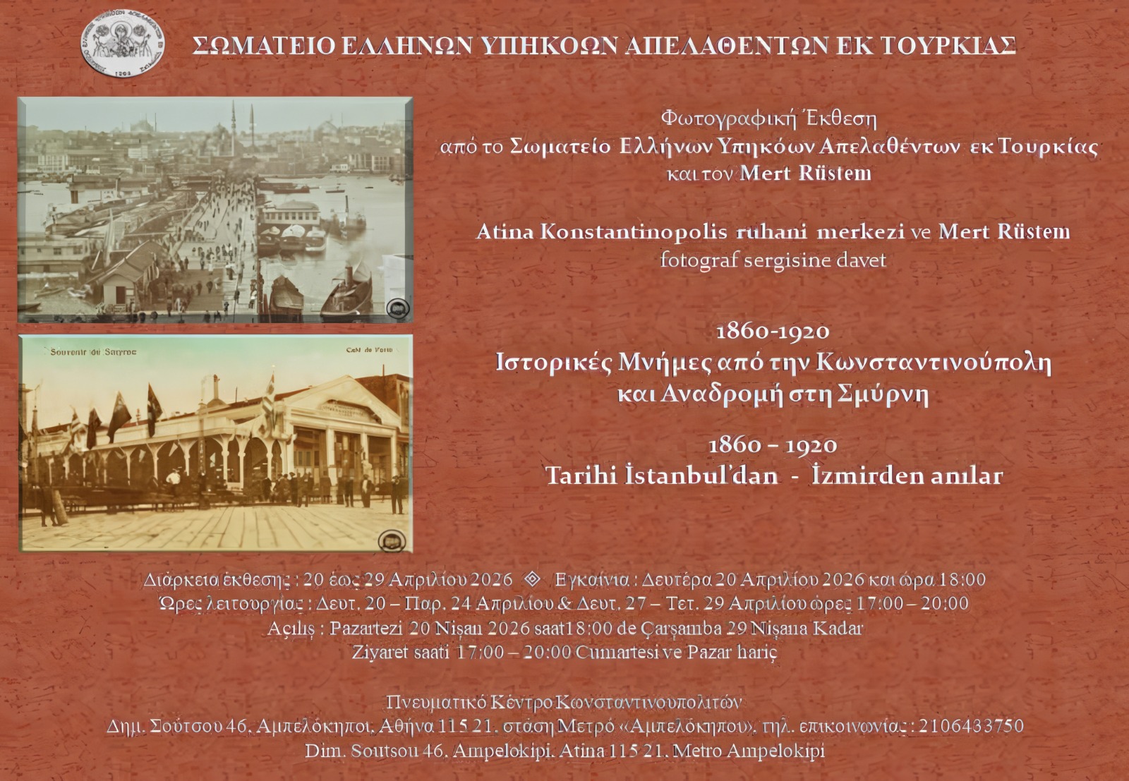 İzmirli koleksiyoner Mert Rüstem, Yunanistan’daki dördüncü fotoğraf sergisini Atina’da sanatseverlerle buluşturmaya hazırlanıyor. Daha önce Midilli ve Sakız Adası’nda büyük ilgi gören “1869-1920 Smyrna’da Yaşam” konulu koleksiyon fotoğraf sergisi, bu kez Atina’da ziyaretçilerin beğenisine sunulacak.