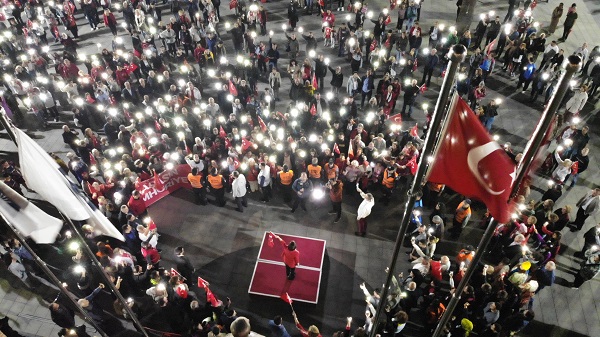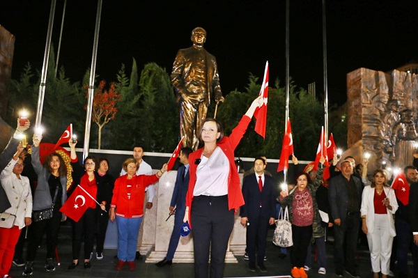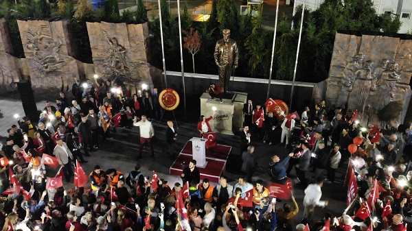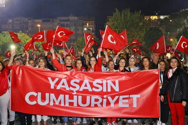 Etkinlikte Mustafa Kemal Atatürk ve silah arkadaşları ile 101 yıllık Cumhuriyet için mücadele edenler için de 1 dakikalık saygı duruşunda bulunuldu. Ayrıca alanda bulunan çocukların da isteğiyle “Andımız” güçlü bir şekilde okundu. Gecenin sonunda hep bir ağızdan söylenen marşlarla Cumhuriyet coşkusu doruğa çıktı.