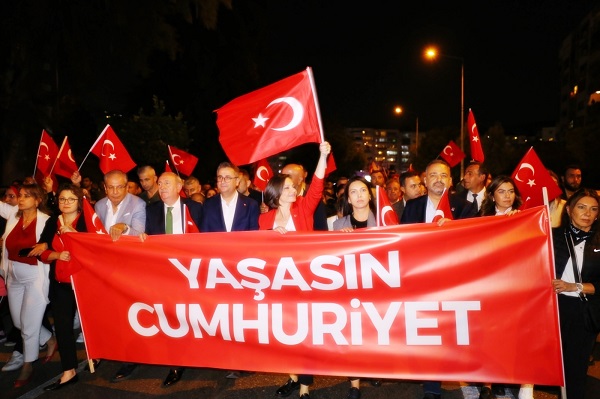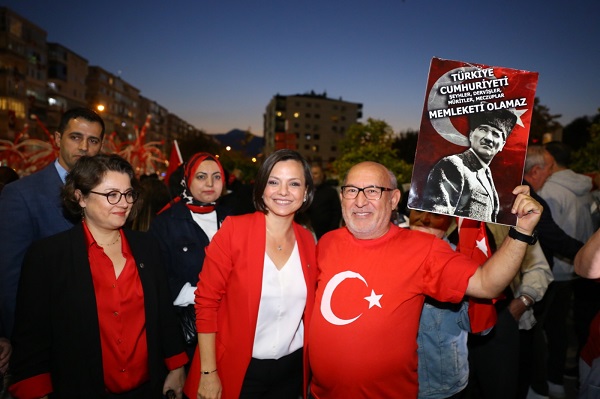 Coşkuyla gerçekleştirilen yürüyüş sonrası Üçyol 100. yıl Uğur Mumcu Parkı’nda vatandaşlara seslenen Karabağlar Belediye Başkanı Helil Kınay, “Burada olan herkesin gözlerinde Mustafa Kemal Atatürk var. Hepinizin gözlerinde Cumhuriyet ve bu ülkenin geleceği var. Bizler 101 yaşındaki Cumhuriyetimizin daha nice yüzyıllarını hep birlikte göreceğiz. Karabağlarda Cumhuriyet için biz varız. İyi ki varsınız. İlelebet Cumhuriyet” diye konuştu.