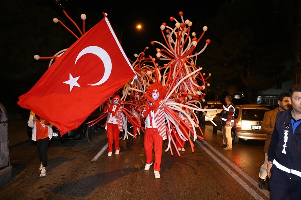 Cumhuriyet Korteji coşkusuna yoldan geçen araçlar kornalarıyla, evlerinin balkonundan ve penceresine çıkan yurttaşlar da bayrak sallayarak ortak oldu. Ayrıca yürüyüş sırasında spor kulüplerinin taraftarları meşaleler yakarak korteje eşlik etti.