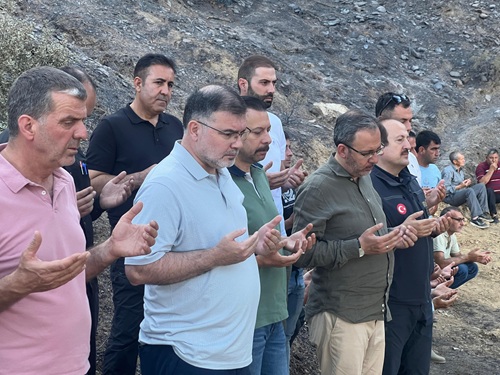 Yangında hayatını kaybeden İbrahim Erkan’ın cenaze törenine katılan ve ardından Üzümlü Mahallesi’ne geçerek son durum hakkında bilgi alan Kasapoğlu; ‘Öncelikle yangında yitirdiğimiz merhum İbrahim amcamıza Allah’tan rahmet diliyor, yakınlarına ve hemşehrilerimize baş sağlığı temenni ediyorum. Ayrıca bu büyük mücadeleye destek olmak için Konya’dan gelerek şehadete yürüyen orman teşkilatımızın kıymetli personeli İbrahim Demir’e de gani gani rahmet diliyorum. Rabbim mekanlarını cennet eylesin’ ifadelerini kullandı.