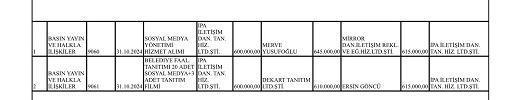 20 adet sosyal medya filmi ve 3 tanıtım filmi için yine 600.000 TL ödeme yapıldı.