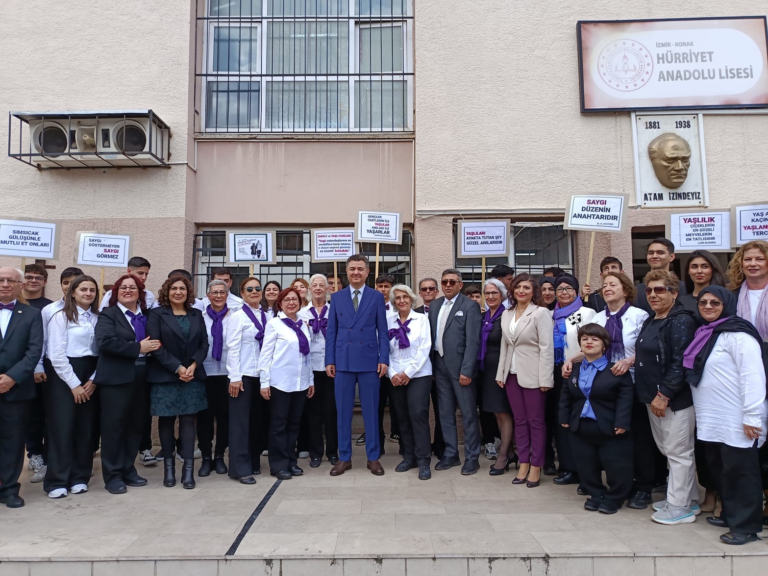 Yaşlılara Saygı Haftası kapsamında Konak Hürriyet Anadolu Lisesi’nde düzenlenen tören ve seminer programı “kuşaklararası dayanışma” teması ile geniş bir katılım ve coşkuyla gerçekleştirildi. Programa; Konak Kaymakamı Sn. Ediz SÜRÜCÜ, Konak İlçe Millî Eğitim Müdürü Metin Ender KARABULUT ve İzmir Valiliği İl Sosyal Etüt ve Proje Müdürü Hatice Suna KOCAGÜL’ün yanı sıra Konak İlçe Millî Eğitim Şube Müdürleri, Ege Otomotivciler Odası Temsilcisi, Ege 3. Yaş Üniversitesi Temsilcisi, Konak ilçesi okul müdürleri, öğretmenler, veliler ve öğrenciler katılım sağladı.