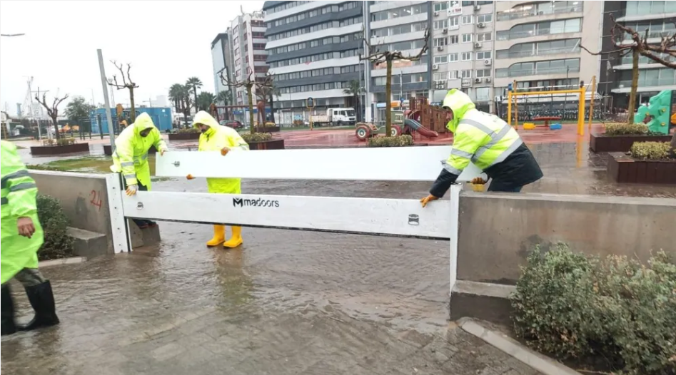 Mart 2025’te, Alsancak Limanı ile Cumhuriyet Meydanı arasında kalan 1.700 metrelik sahil şeridinde geçici fırtına duvarı ve sel kapıları tamamlandı.