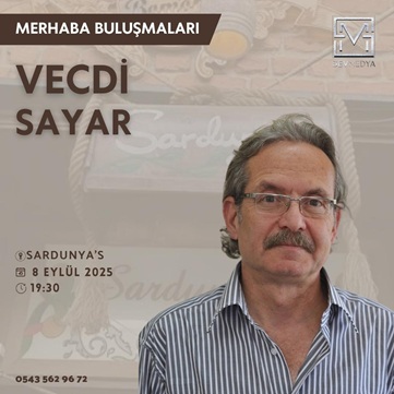 Sevmedya Yayın Grubu’nun Merhaba Dergisi’nce düzenlenen “Merhaba Buluşmaları”nın eylül ayı konuğu Vecdi Sayar olacak. 8 Eylül 2025 pazartesi günü saat 19:30 da Sardunya’s ta yapılacak söyleşi sonrası Sayar katılımcıların sorularını..