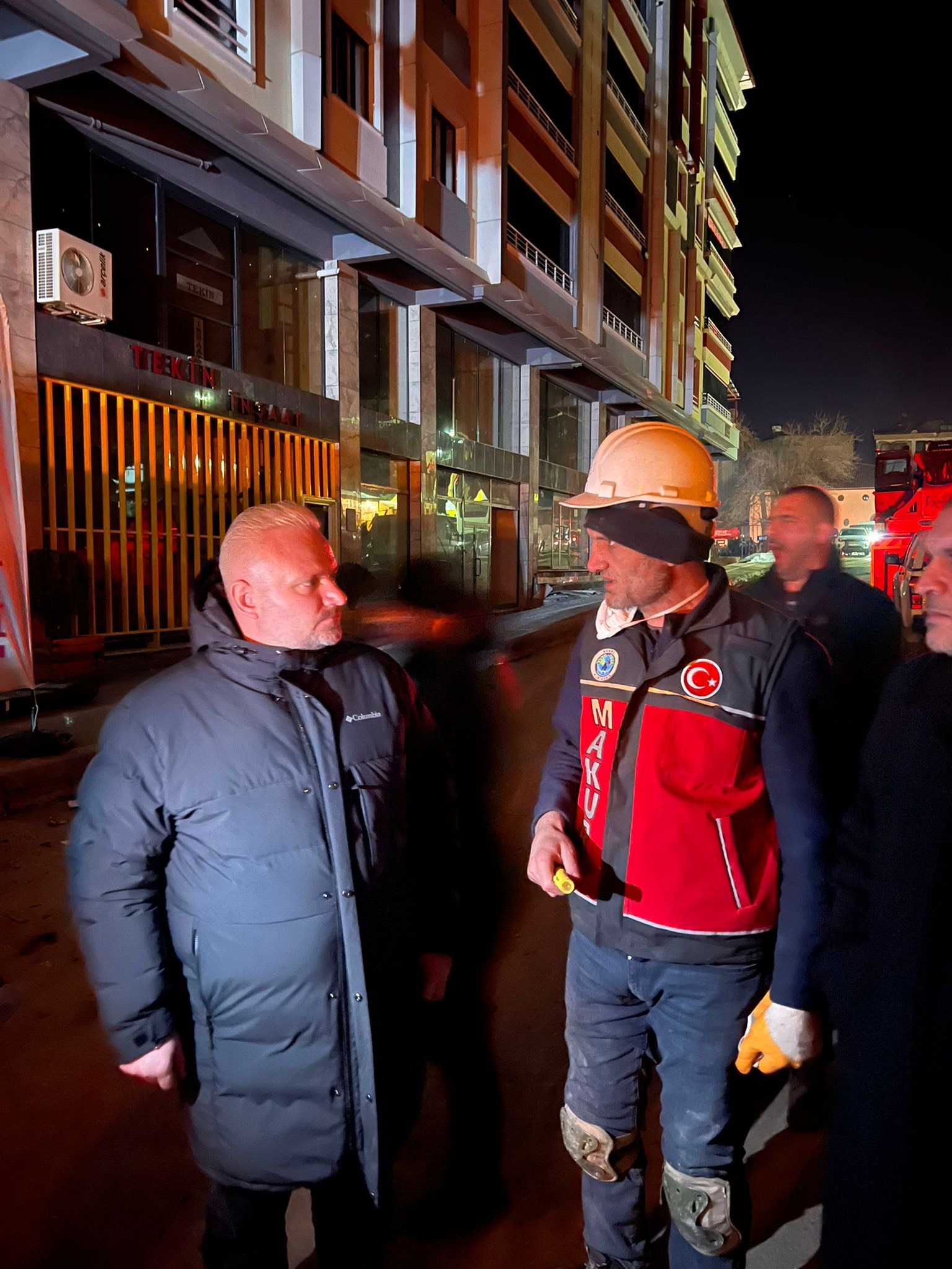 Menemen Belediyesi Arama Kurtarma (MAKUR) ekibinin Gaziantep İslahiye’deki 10 binanın yıkıldığı alanda yaptığı çalışmaları yerinde takip eden Pehlivan, “Diğer 9 şehrimiz gibi burada da çok sayıda bina yıkılmış durumda. Tarifi olmayan ağır bir tablo var. Cenazelerimiz var, yaralılarımız var. Ama şunu gördüm ki; umut da var. Her bölgede gece gündüz yoğun bir çalışma yürütülüyor. Bizim ekibimiz de AFAD Koordinasyonunda bir can kurtarmak için titizlikle çalışıyor. Emeklerine, yüreklerine sağlık. Allah, bölgede görev yapan tüm ekiplere güç kuvvet versin, işlerini kolaylaştırsın” diye konuştu.
