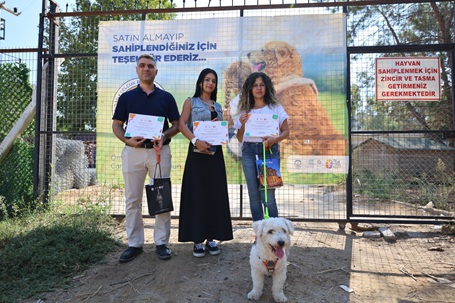 Efes Selçuk Belediyesi, barınaktan köpek sahiplenen vatandaşlara duyarlılıkları ve örnek davranışları için Teşekkür Sertifikası ve sahiplenilen patili dostları için hediyeler verildi.