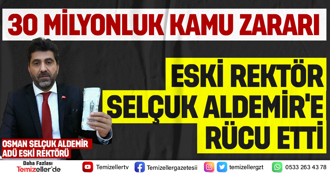 Usta gazeteci Ahmet Tübcel, Osman Selçuk Aldemir’in rektörlük dönemindeki tüm iş ve işlemlerini detaylı bir şekilde araştırarak, kamuya milyonlarca lira zarara neden olan belgeleri ortaya çıkardı. Bu belgeler, Adnan Menderes Üniversitesi’nin mali yapısında ciddi usulsüzlüklerin olduğunu işaret ediyor. Tübcel, Aldemir’in görevi kötüye kullanarak hem üniversiteye hem de kamuya büyük zararlar verdiğini iddia etti.