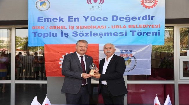 DİSK Ege Bölge Temsilcisi Memiş Sarı da törende yaptığı konuşmada şunları kaydetti: “Sayın Belediye Başkanımız ile Toplu İş Sözleşmesi konusunda sendikamız güzel bir anlaşma sağladı. İnanıyorum ki önümüzde KHK’lı işçilerimizi kapsayan sözleşme görüşmeleri de aynı güzellik ile sonuçlanacak. 50 aylık Kayyım yönetiminin ardından demokrasi ile buluşmuş ilçemizde emekçilerimizle bir aradayız. Burası çok özel bir yer. Çünkü burada Cumhuriyet’in adımlarını atmış, Cumhuriyet’in bayrağını dalgalandıran Urlalılar var. Yani mavi gözlü devin yoldaşları var. Yani Mustafa Kemal Atatürk’ün arkadaşları var. Yani Cumhuriyete sahip çıkan DİSK’in işçileri var. Bunu tüm Urla böyle bilsin.”